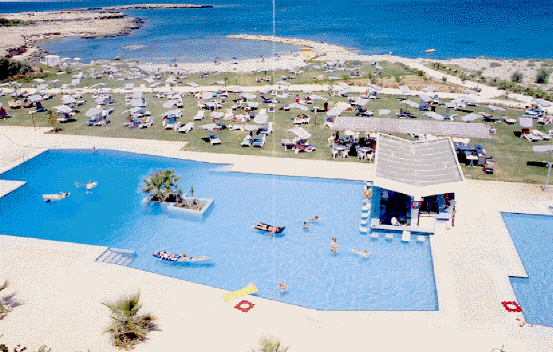 The Cavo Maris is a Popular, Superior 3*** Hotel with Restaurant (outdoor or indoor), Cocktail-Bar/Cafeteria, Lounge, Play Room, Conference Room, Souvenir Shop/Kiosk, attractive large Outdoor Sweet water Swimming Pool, with extensive grass or pavement sun terraces in 3 Levels (with free Sun loungers and Umbrellas), Children's Pool, Swim-up Pool Bar & Restaurant (serving also food, B-B-Q and snacks, ample Parking, Special Diets. Early Children Meals, Baby cots, Baby sitting (on request), Baby high chairs, ), Children's Play Ground, Children's Mini Club, Room Service, Laundry Service, Safe deposit boxes at the Reception. Entertainment offers different event almost every minute", with regular Daily and Evening Sports Animation (Stretching, Jogging, Aerobics, Water Gym, various sports competitions or Tournaments etc.) and Entertainment's program for adults & children (ranging from piano and bouzouki music to Karaoke Nights, Magic Shows and Bingo. Barbecues and Cyprus Nights with Folklore Dancing, International Shows, Cabaret Shows, Family Shows etc. and regular Dancing to live music or record music, etc.). Two Flood-lit hard surface Tennis courts, Table Tennis, Basket Ball, Water Polo, Beach Volley Ball, Archery, Billiards, Video Games etc., and a great selection of Water Sports on the beach (under separate management). |